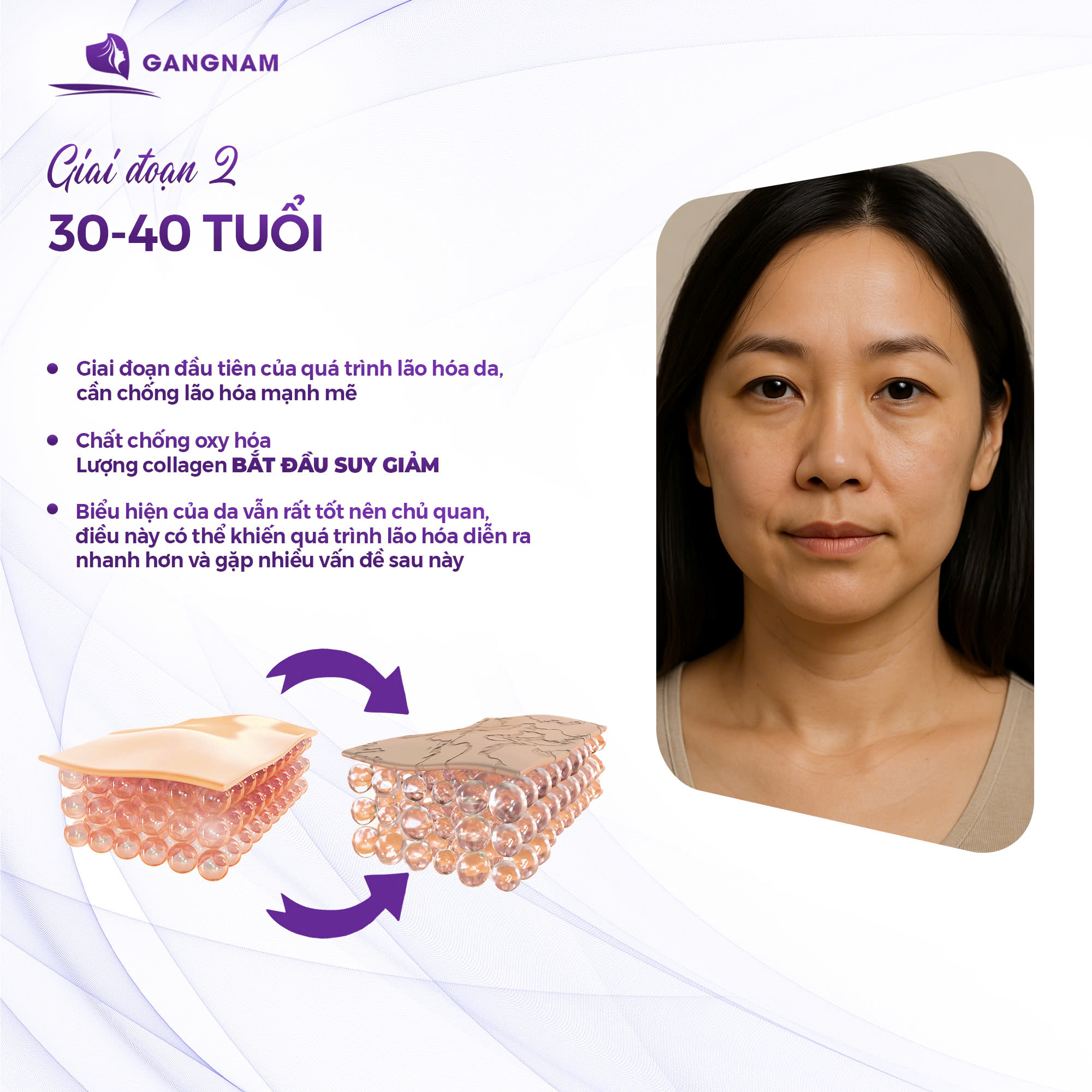 Ở độ tuổi từ 30 đến 40, làn da bắt đầu bước vào giai đoạn đầu tiên của quá trình lão hóa. Đây là thời điểm quan trọng để chị em đầu tư vào chăm sóc da chuyên sâu và chống lão hóa mạnh mẽ, nếu không muốn “già trước tuổi”!